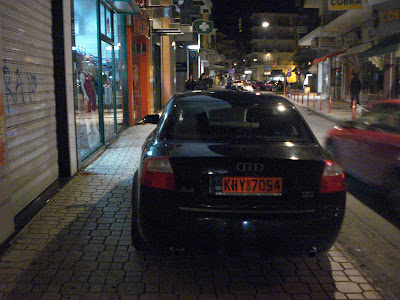 Χθες βράδυ...Οδός 16ης Οκτωβρίου, δίπλα στην πλατεία Ελευθερίας στο κέντρο της Κατερίνης... Κάποιος δήμαρχος της Πιερίας έχει παρκάρει φαρδιά πλατιά το υπηρεσιακό του αυτοκίνητο πάνω στο πεζοδρόμιο, όπου το άφησε εκεί για αρκετή ώρα, αφού βρισκόταν σε παρακείμενο σουβλατζίδικο, όπου έτρωγε σουβλάκια... Δίνουν το καλό παράδειγμα στους πολίτες οι τοπικοί μας άρχοντες... Άντε δήμαρχε και εις ανώτερα!...